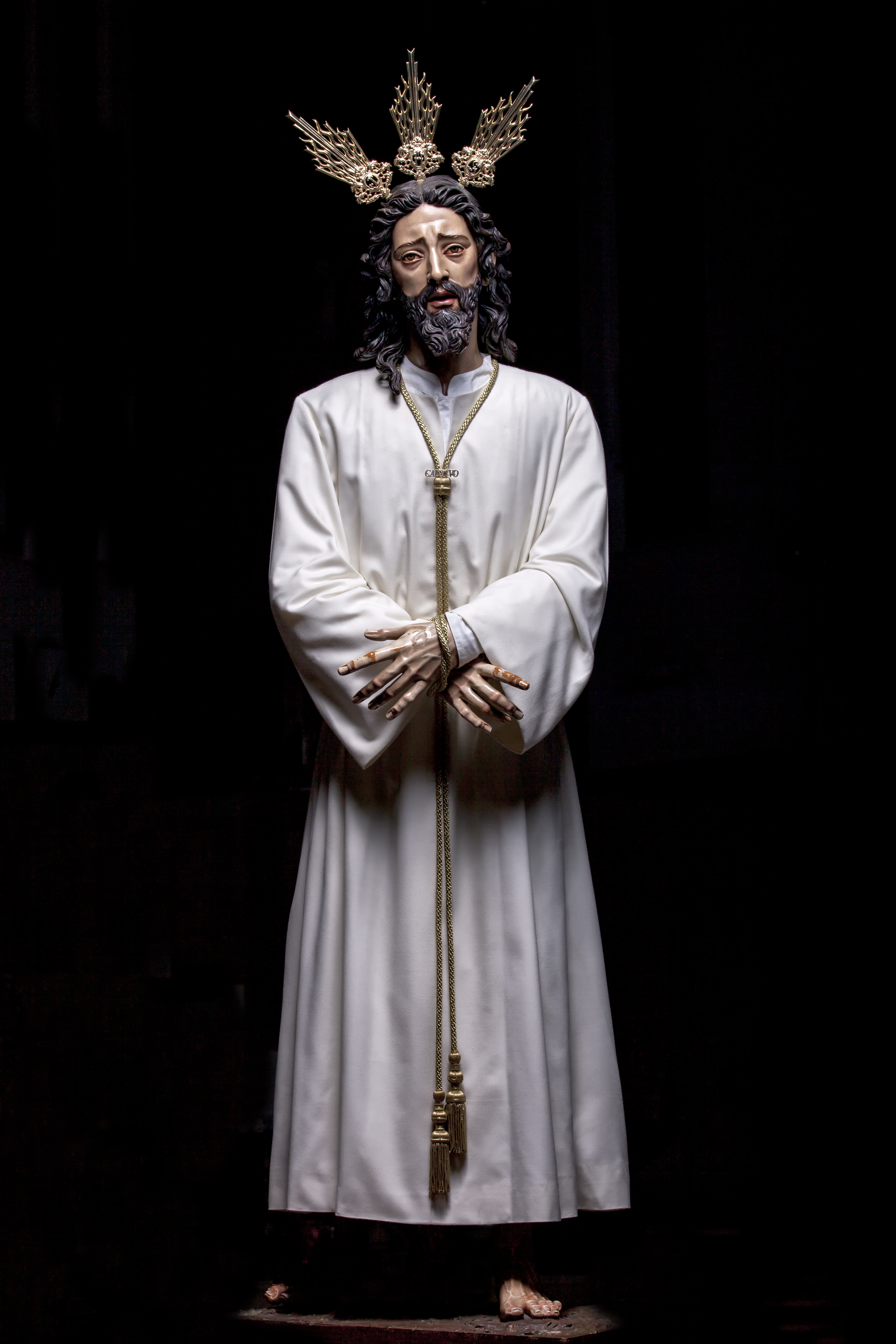 Realizado en madera de cedro real, tiene una altura de 1,83 metros, es una imagen de vestir y policromada siguiendo los cánones de la imaginería barroca andaluza. Es, ese momento del Prendimiento, ese desaliento y abandono el que se refleja perfectamente en toda su anatomía, creando una imagen devocional que se nutre de un movimiento total.